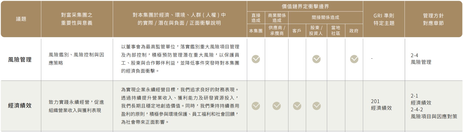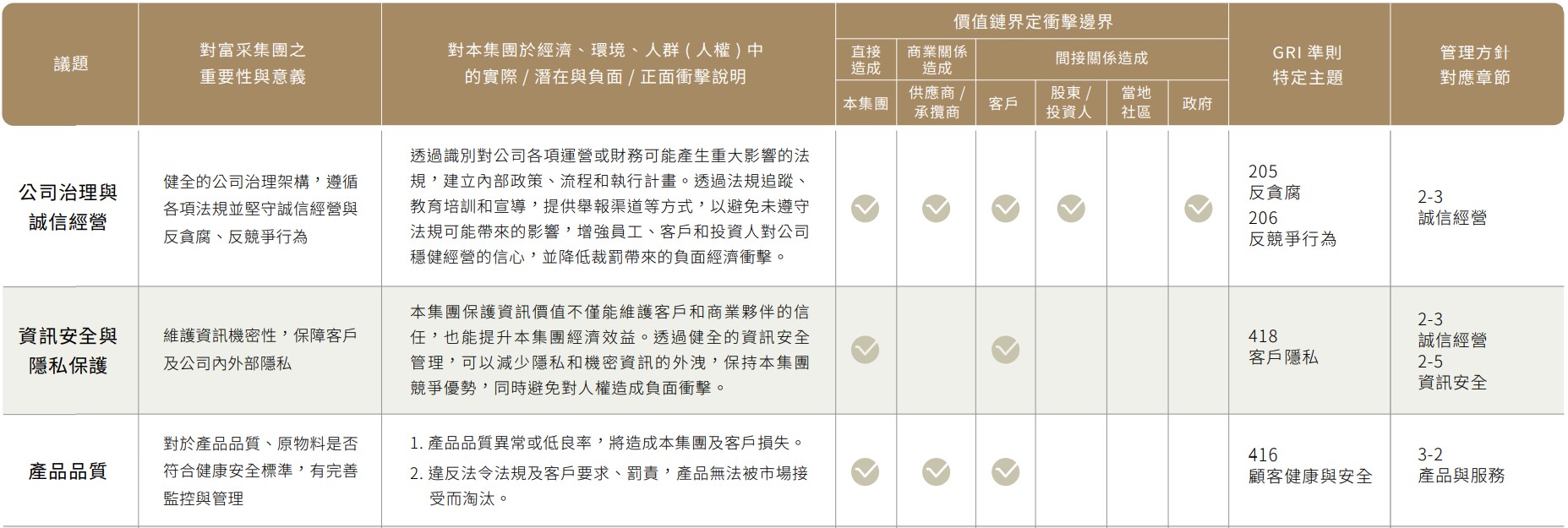 - 重大議題衝擊說明與價值鏈關係