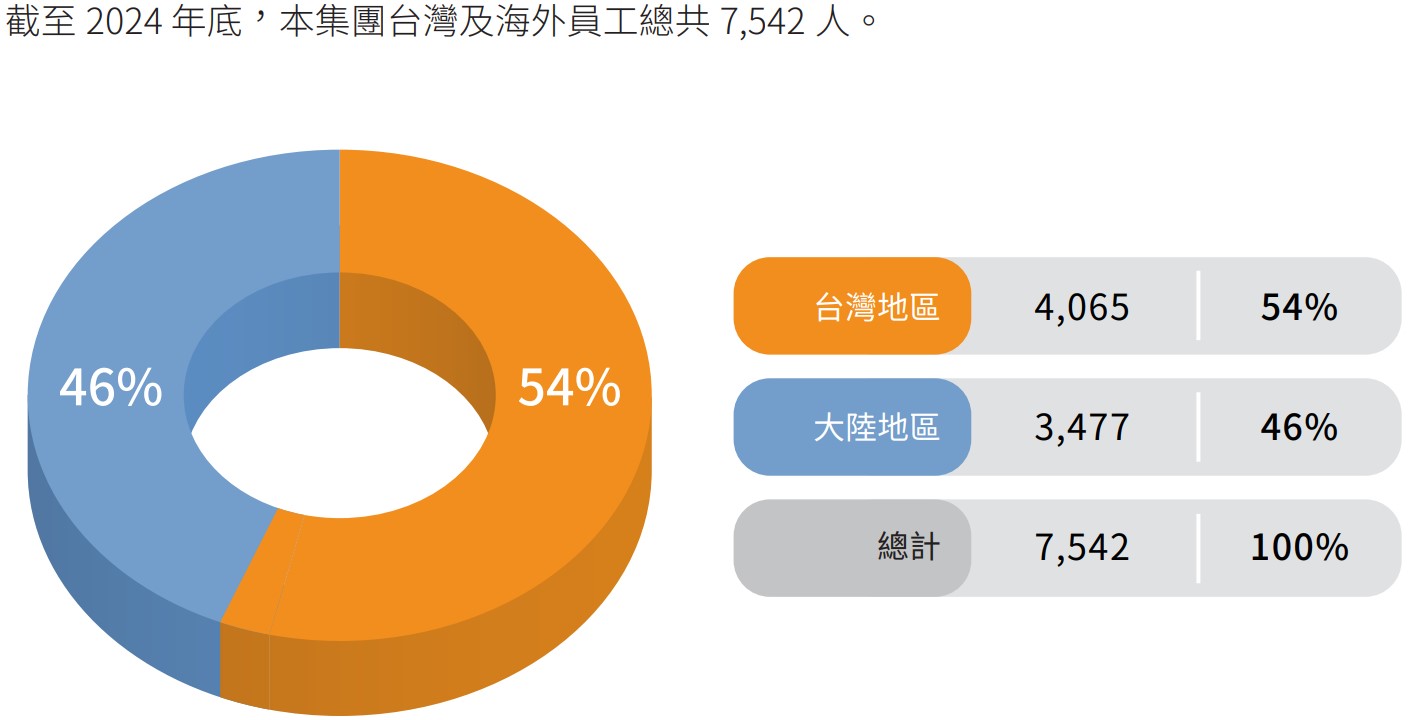 截至 2024 年底,本集團台灣及海外員工總共 7,542 人。