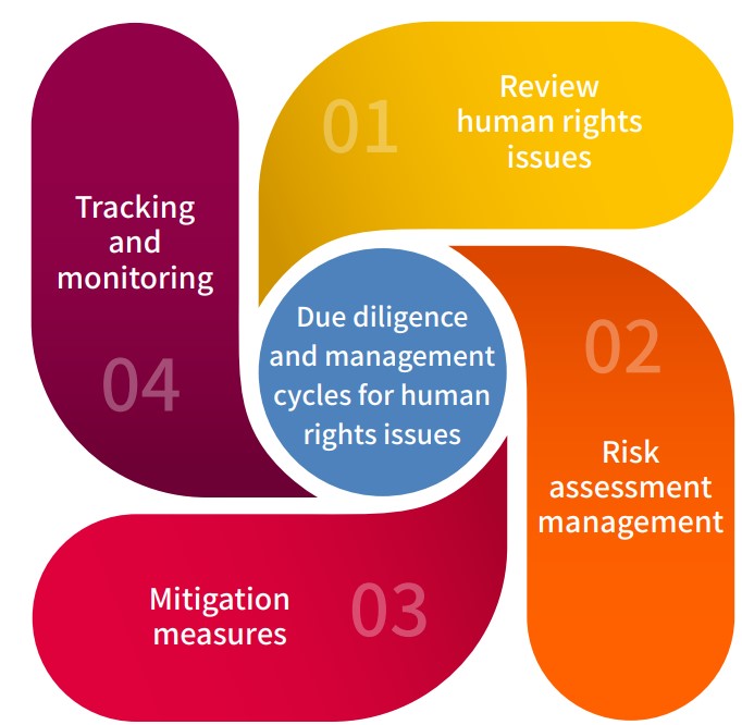 The Group uses human rights self-assessment questionnaire (SAQ) to conduct risk assessments and formulated risk mitigation plans for identified potential risk issues, as well as implementation, supervision, and management of prevention measures:*